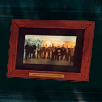 Фотография руководства «Геофарм» «Понтовое изображение больших шишек. На обороте подпись: "Встреча совета директоров „Геофарм“, 1997. Эмори Кроун официально становится главой компании после смерти его отца Рональда"».