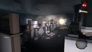 There's a door in the right hand wall which leads to a set of stairs. These lead down to the basement and vault. The stairs lead to a short corridor, with an unusable door and a barred door leading to the vault itself. The vault doesn't have a stereotypical vault door, rather just a standard reinforced metal one which opens to reveal the vault interior. There's also no bags of money lying around, or bars of gold. Instead, rows of safes are there which could be opened to store the money bags or gold bars if that's what the bank decided to hold.