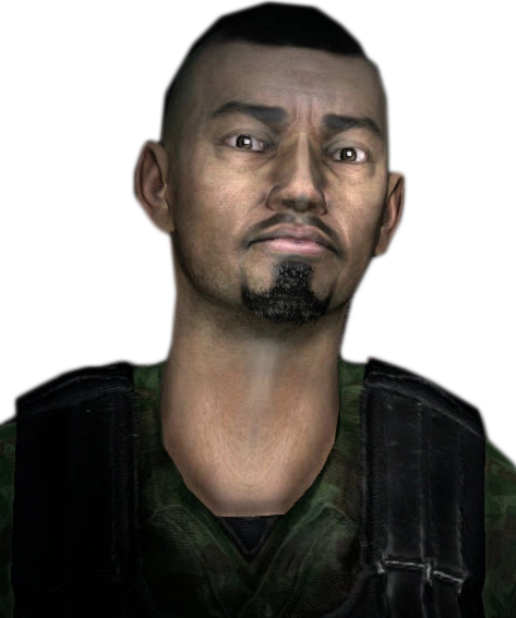 Blaid is a middle-aged man with shaved black hair and a slight beard and moustache. Like the other soldiers in the arena, he wears the standard B.I.D.F. uniform consisting of black body armor, black combat boots, a green camo top, and green camo trousers.[3] In the Definitive Edition, his skin is darker, and his uniform is now camo yellow.[4]