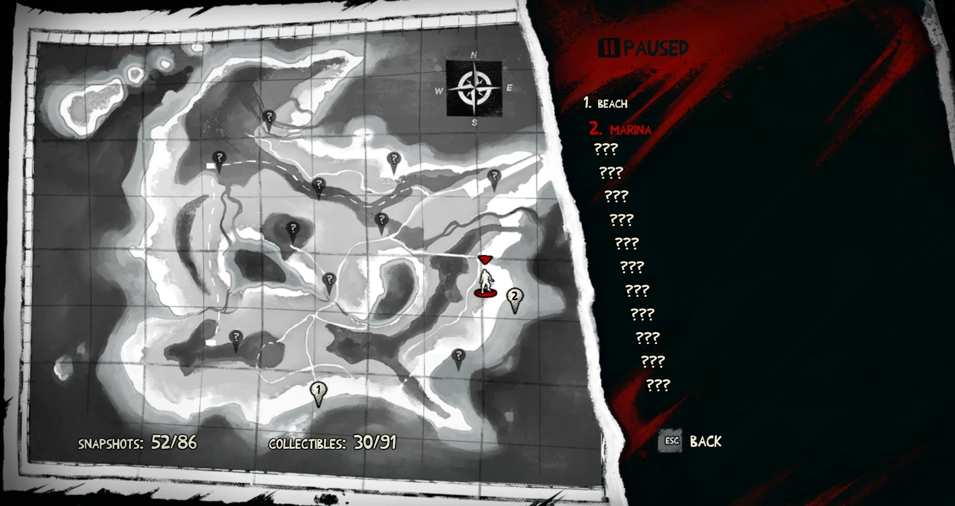 The map serves as the main map of the game, listing locations and where they are in relation to the island after you first visit them. The map will automatically update with each location when you first visit them. However, you can't zoom in to the map, use it as a minimap or get a more detailed view of the entire area, unlike previous games where the map is interactive and shows your nearby surroundings.