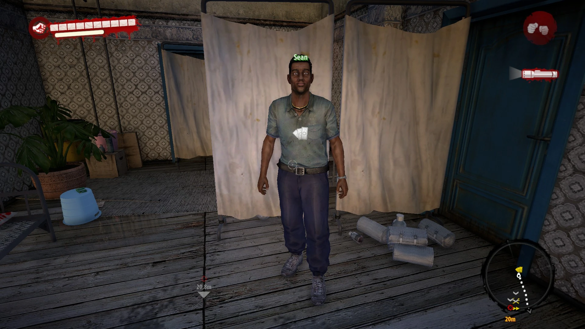 Sean is a survivor and a merchant featured in Dead Island: Riptide. He is first encountered in the Makeshift Hospital in Henderson while completing Cecil's first side quest, The Darkness. He is found on the second floor with the other survivors and gives the heroes the side quest ER to find a Surgical Toolkit.[1] He will also sell limited supplies to the Heroes as a merchant. After visiting Stan's House and collecting them, Sean will sell more medical supplies, amongst other things.[2] Like the other survivors at the Makeshift Hospital, the ending cutscene shows the doors being broken down by a Ram, leaving his fate unknown, but presumably, he and the others are killed by the invading zombies.[3]