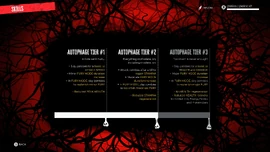 Equipping Autophage Skills increases the player's Autophage Tier level. The game has three Autophage Tier levels, each granting significant bonuses and downsides that increase with each tier. The Autophage Tier level is increased by one tier with every Autophage Skill that is equipped. Each tier is stackable, with Tier 3 having the effects of all three tiers applied. Tier 1 will lower the slayer's highest Slayer Trait in exhance for increasing their offensive capability after scoring a kill.