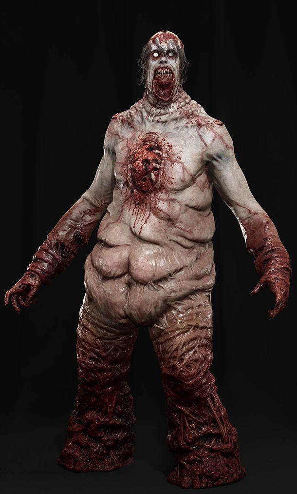 Unlike the overlapping wrinkled layers skin Clotters have including less injuries, the Dirge has more overlapping and sagging skin and in general, a more grotesque appearance.